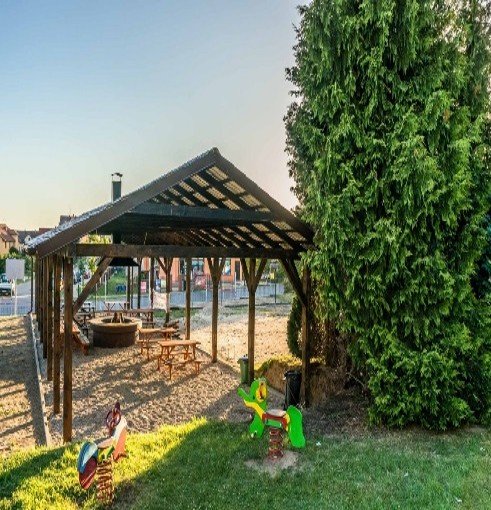 Do dyspozycji gości: FIT PARK – 6 stanowisk do ćwiczeń na wolnym powietrzu, salka do ćwiczeń (bieżnia, drabinki, rowerek), bilard, tenis stołowy, piłkarzyki, boisko do siatkówki plażowej, plac zabaw dla dzieci, krąg ogniskowy, wypożyczalnia rowerów, bezprzewodowy internet we wszystkich pokojach, parking płatny, oświetlony